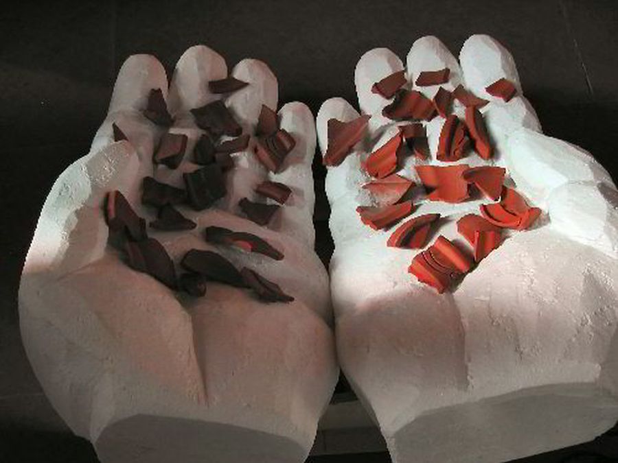 In Gottes gnädige Hände konnten die Gottesdienstbesucher ihre persönlichen Pleiten, Pech und Pannen in Form von Scherben, hineinlegen.