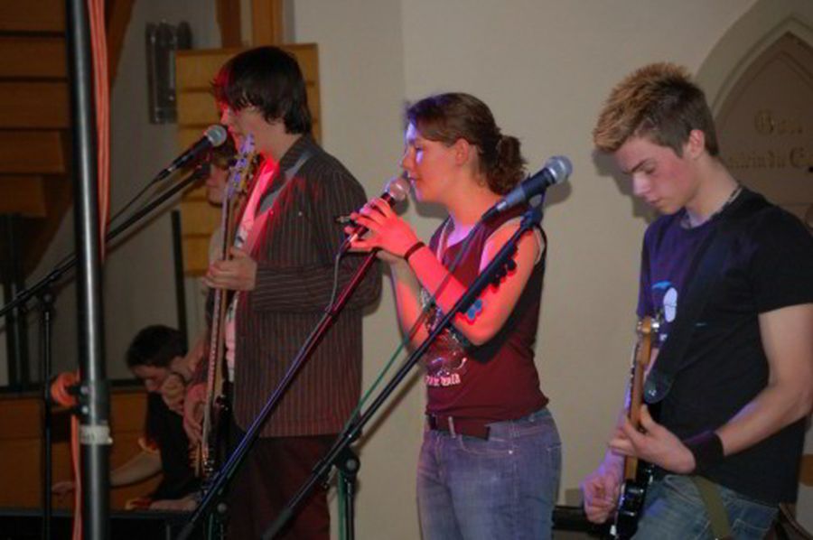 Intensives Üben lohnt sich – die Gruppe Public Address überzeugte wieder mit guten Rhythmen und christlicher Rockmusik. Von links: Benjamin Lauber - Keyboard, verdeckt Thomas Kolb - E-Gitarre, Timo Essig – Bass, Annika Friesinger – Gesang, Tobias Beljanski - Bass