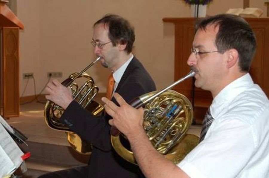 Das Bläserquartett wurde durch zwei Hornbläsern abgerundet. v.l. Rolf Elsässer, Alexander Dauth. Für alle, die es verpasst haben - herzliche Einladung zum Kantatengottesdienst am Sonntag 21.06.2009 in der Ev. Kirche Niefern – 9:45 Uhr. Dort können Sie nochmals das gesamte Programm miterleben.