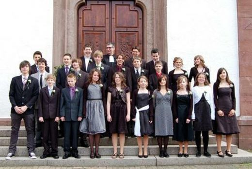 Die Konfirmanden an ihrem großen Tag, kurz vor der Einsegnung...