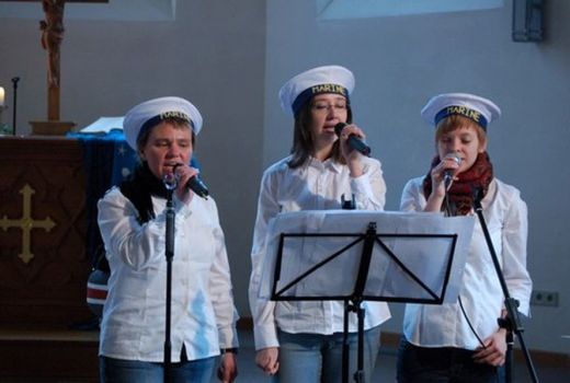 passend zum Thema erschien das Musikteam im Marinelook ...