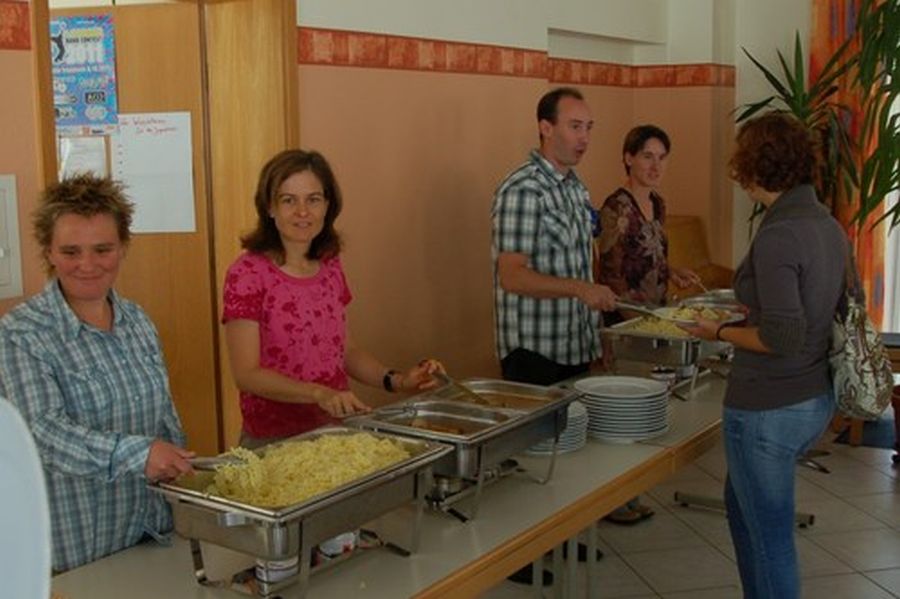 Ein Dankeschön den fleißigen Helfern – einfach hinsitzen und essen – den Rest erledigen immer die Freiwilligen aus den Hauskreisen.
