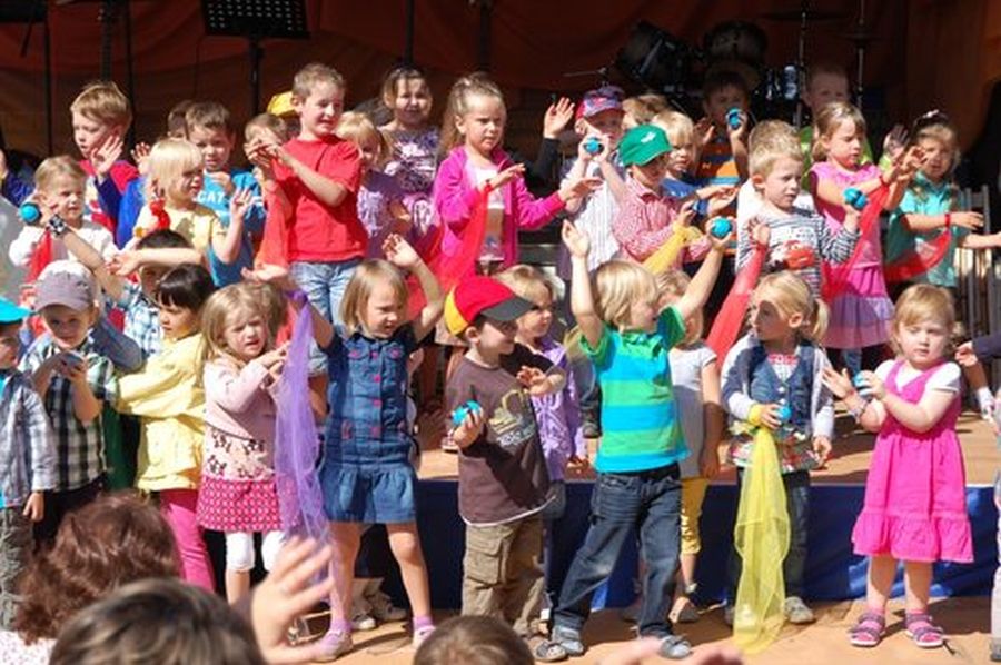 Viel Spaß hatten die Kindergartenkinder und ihre Erzieherinnen, durften sie doch beim Gottesdienst auf der Open-Air Bühne auftreten.