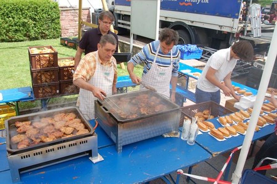 Alle Hände voll zu tun hatten die Grillmeister, denn nach dem Gottesdienst wollen alle gleich das Mittagessen.