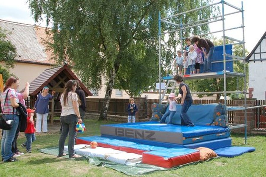 Bei hochsommerlichen Temperaturen nutzten viele Familien den ganzen Tag bei Sport und Spiel rund ums Gemeindehaus. Das Kindergartenteam hatte sich viele Aktionen einfallen lassen, welche Eltern und Kinder gemeinsam unternehmen konnten. Außerdem konnten alle interessierten Öschelbronner die neuen Sanitäranlagen und die neu eingerichtete U3-Gruppe im frisch renovierten Kindergartengebäude besichtigen. Das Kistenstapeln und das Aerotrimm fand vor allem bei größeren Kindern und Jugendlichen große Nachfrage. Der Posaunenchor erfreute am Nachmittag mit einem kleinen Platzkonzert die Zuhörer und die Gruppe „Kairos“ um Pfarrer Schaan rundete das abwechslungsreiche Programm ab. Natürlich wurde an diesem Tage nicht nur gesungen, gebetet und geturnt. Die Pflege der Gemeinschaft bei gemeinsamen Gesprächen über Generationen hinweg, hatte Raum und Zeit. Letztendlich trugen auch das schmackhafte Essen in Form von Schnitzelweck und Rostbratwurst, das reichhaltige Salatbuffet und die traumhafte Kuchentheke dazu bei, sich an diesen Tag gerne zurückzuerinnern. Ein herzliches Dankeschön an alle fleißigen Hände – nur durch tatkräftige Unterstützung vieler Freiwilligen kann so ein schönes und umfangreiches Gemeindefest überhaupt erst realisieren werden. Ebenfalls ein Dankeschön an die Firma Ulrich Geltz für die Bereitstellung des LKWs. Bleibt nur der Gedanke zum Schluss: Bei der Öschelbronn Kirchengemeinde da bin ich zu Hause, da fühle ich mich wohl, da gibt es nette Menschen, da lass ich den Alltag hinter mir und lass die Seele baumeln. u.e.