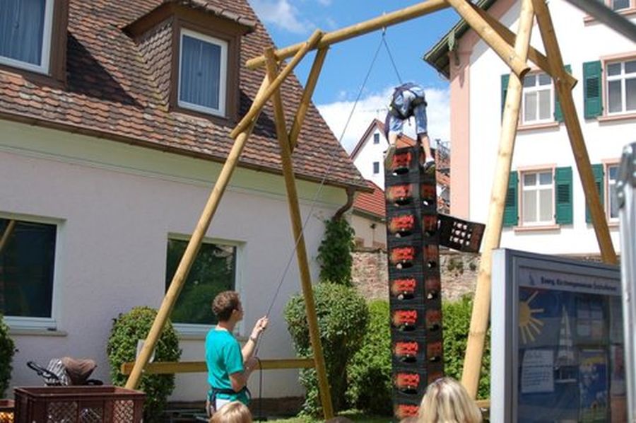 Kistenstapel gehört traditionell zu jedem Gemeindefest und fasziniert nicht nur die Kinder, die Zuschauer fiebern bis zur letzten Kiste mit.