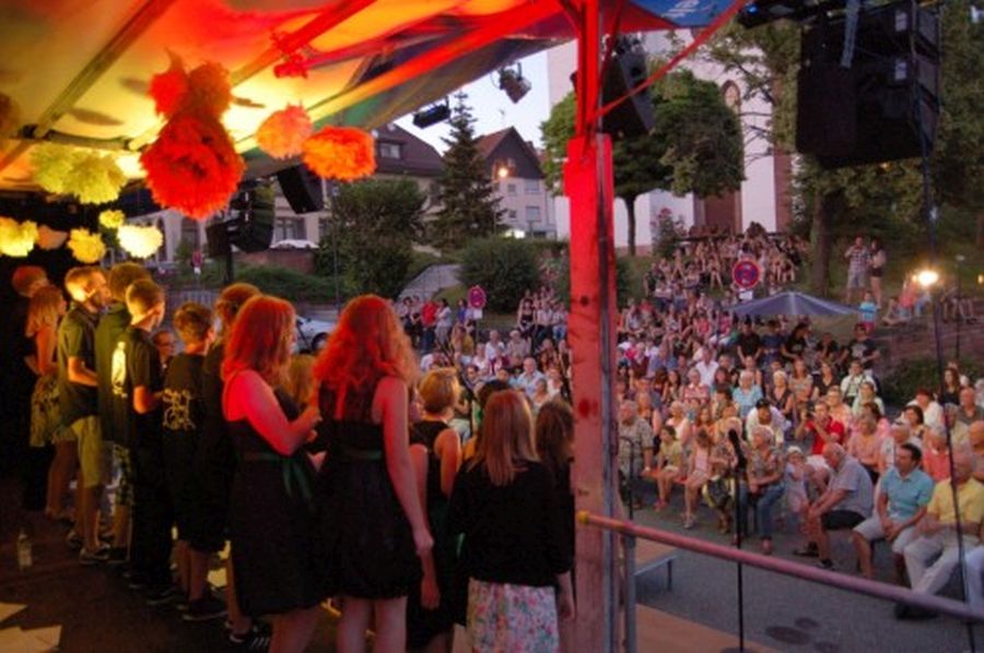 Bereits am Samstagabend erfüllte der Jugendchor der Evang. Kirchengemeinde Öschelbronn den Bereich um das Gemeindehaus mit fetzigen, modernen Liedern