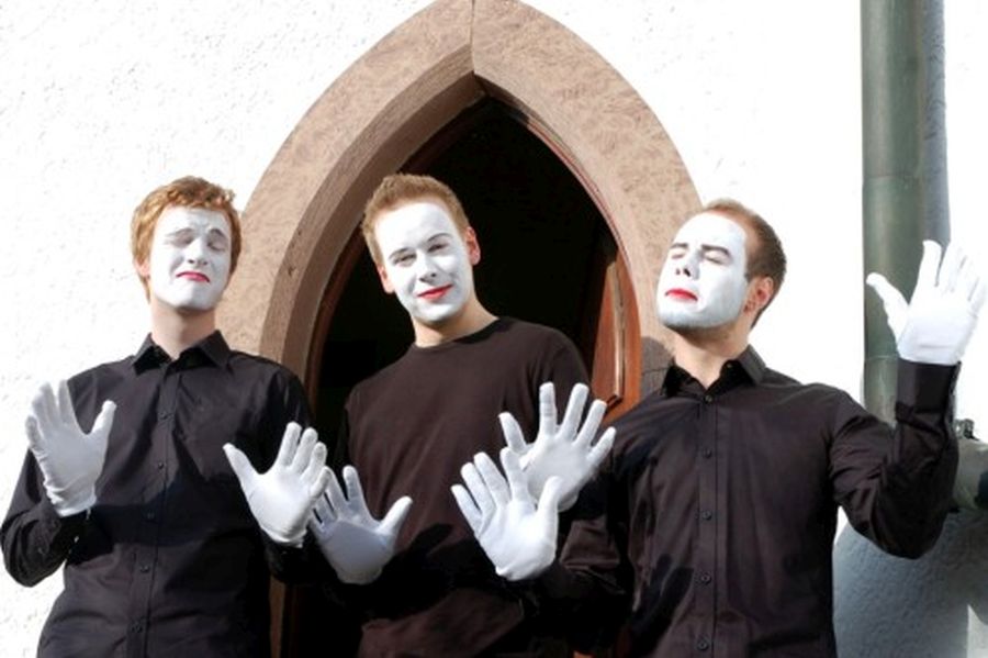 Abwechslungsreiches Programm. Auch Pantomime hat in diesem modernen Gottesdienst seinen Platz gefunden. Professionell aufgeführt von v.l. Matthias Brodbeck, Tim Kreutel und Christian Frei