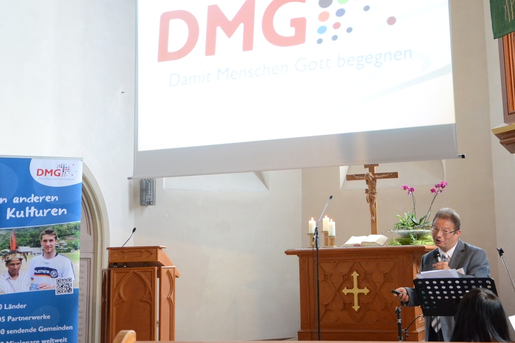 Herr Hartmut Peters konnte anhand vieler Zahlen und Fakten berichten, wo die DMG weltweit unterwegs ist, wie wichtig die verschiedenen Aufgaben sind und rief die Zuhörer in seiner Predigt zu mehr Barmherzigkeit auf. Nach einem guten Mittagessen und mit dem nicht unerheblichen Betrag der Kollektensammlung, verabschiedete man die Gäste.