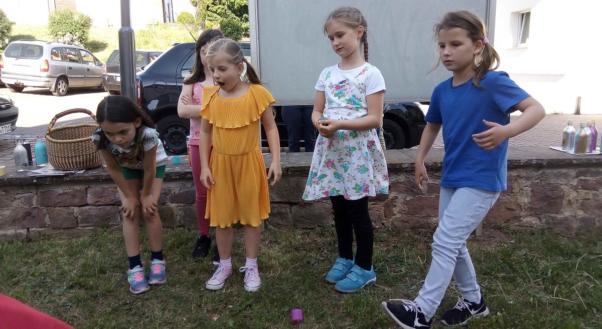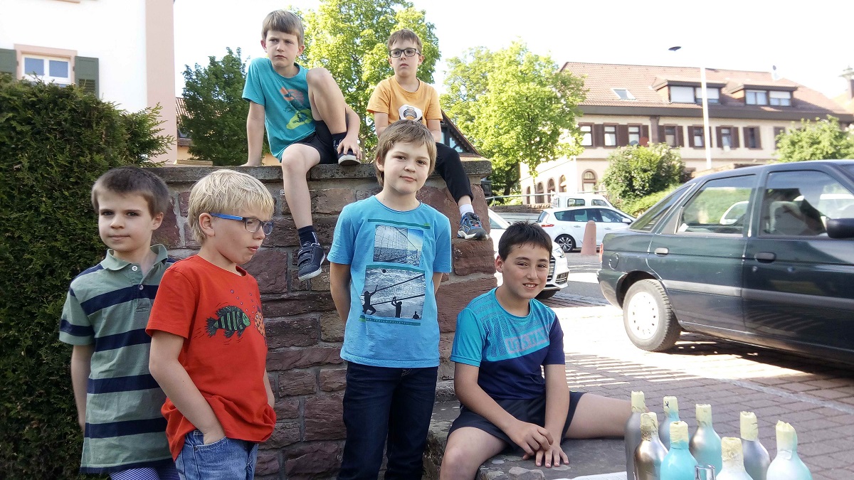 Stehen bei uns in der Boxenstopp-Jungschar oft Geschichten und Theaterstücke im Vordergrund, so wurde am 7.5. im und vor dem Gemeindehaus kreativ gebastelt. Unter Anleitung von Sarah Dingler gingen wir unter die Sprayer und verzierten Getränkeflaschen. - So manches Kind war schwer am überlegen, ob das Kunstwerk zum Muttertag verschenkt werden sollte oder ob man es besser für sich behielte.