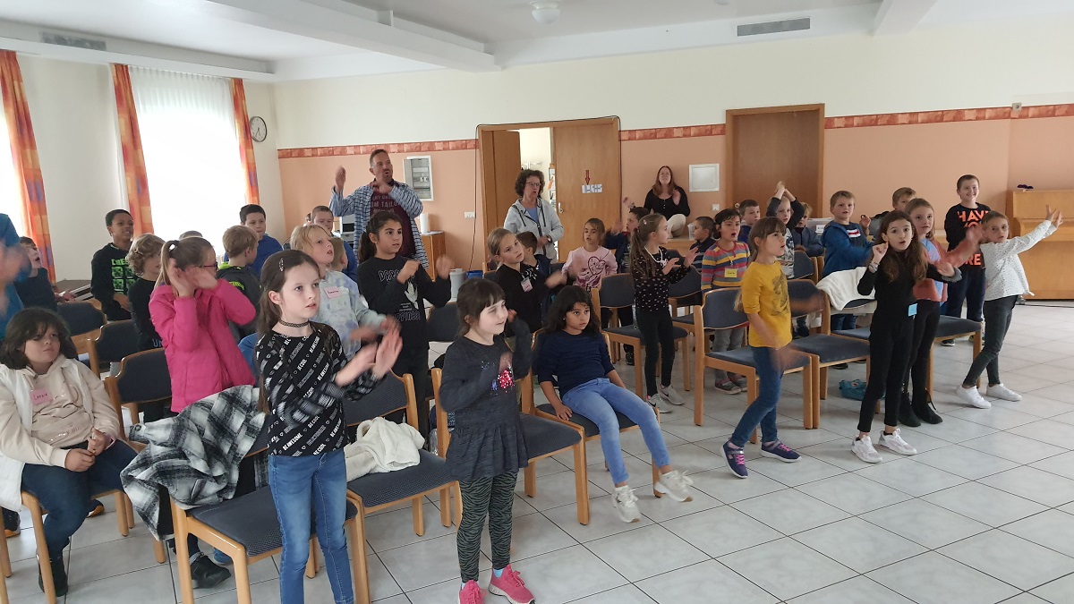 Nach unserem Windfest hat die Themenreihe "Von ganzem Herzen - Samuel" begonnen. Wie die Israeliten damals lebten und was ihnen wichtig war, sahen die Kinder in einem Theaterstück. "Von Gott erbeten" hieß die erste Folge, bei der klar wurde, dass Gott nicht nur eine abstrakte Vorstellung, sondern ein persönliches Gegenüber ist. Ihm dürfen wir wie Hanna mit unseren Bitten in den Ohren liegen. Hanna durfte sich nach langem Warten über ihr erstes Baby freuen und vergaß in ihrer Dankbarkeit Gott nicht. Auf den Bildern sehen Sie die "Boxenstoppler" beim Singen und eine Gruppe in der Spielezeit.