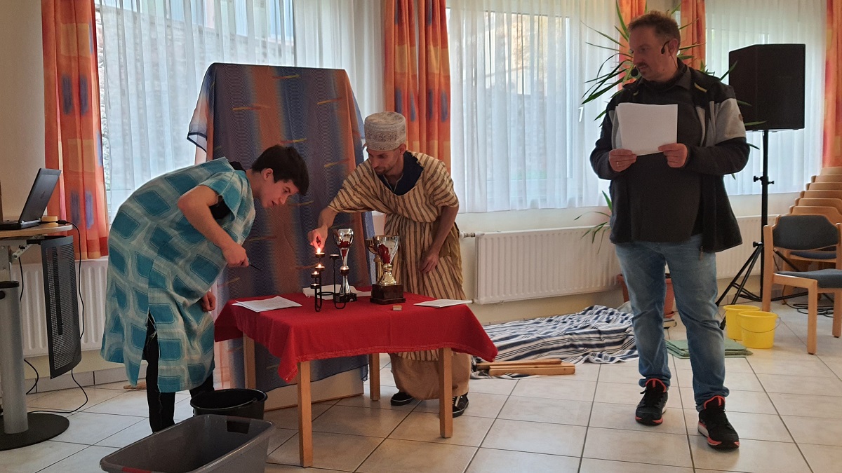 Was muss man bei einem Umzug alles mitnehmen? An was denken Kinder? An was denken Erwachsene? – Viele Fragen, die einige unserer Jungscharkinder ganz praktisch beantworten konnten, weil sie auch schon einmal umgezogen sind: „Man muss so viel einpacken und es ist sehr anstrengend!“ Auch der kleine Samuel musste umziehen. Mit ungefähr 6 Jahren weg von seiner Familie nach Silo in das Heiligtum zum Hohenpriester Eli. Dort lernte er wegen eines Versprechens seiner Mutter den Priesterberuf. Das war für ihn sehr interessant. Samuel lernte die Geschichten des Volkes Israel kennen, er lernte, wie Gott immer wieder für alle erlebbar eingriff. Er lernte, selbst zu diesem Gott eine Beziehung aufzubauen; er lernte leider auch Menschen kennen, die trotz ihres Priesterberufes nicht auf Gottes Wort hörten. Unser Theaterstück zur Samuel-Geschichte wird in den nächsten Montagen fortgeführt. In den Spielegruppen war wieder viel Zeit zum Austoben und in den Freundesgruppen lösten wir Rätsel zu unserem Thema.